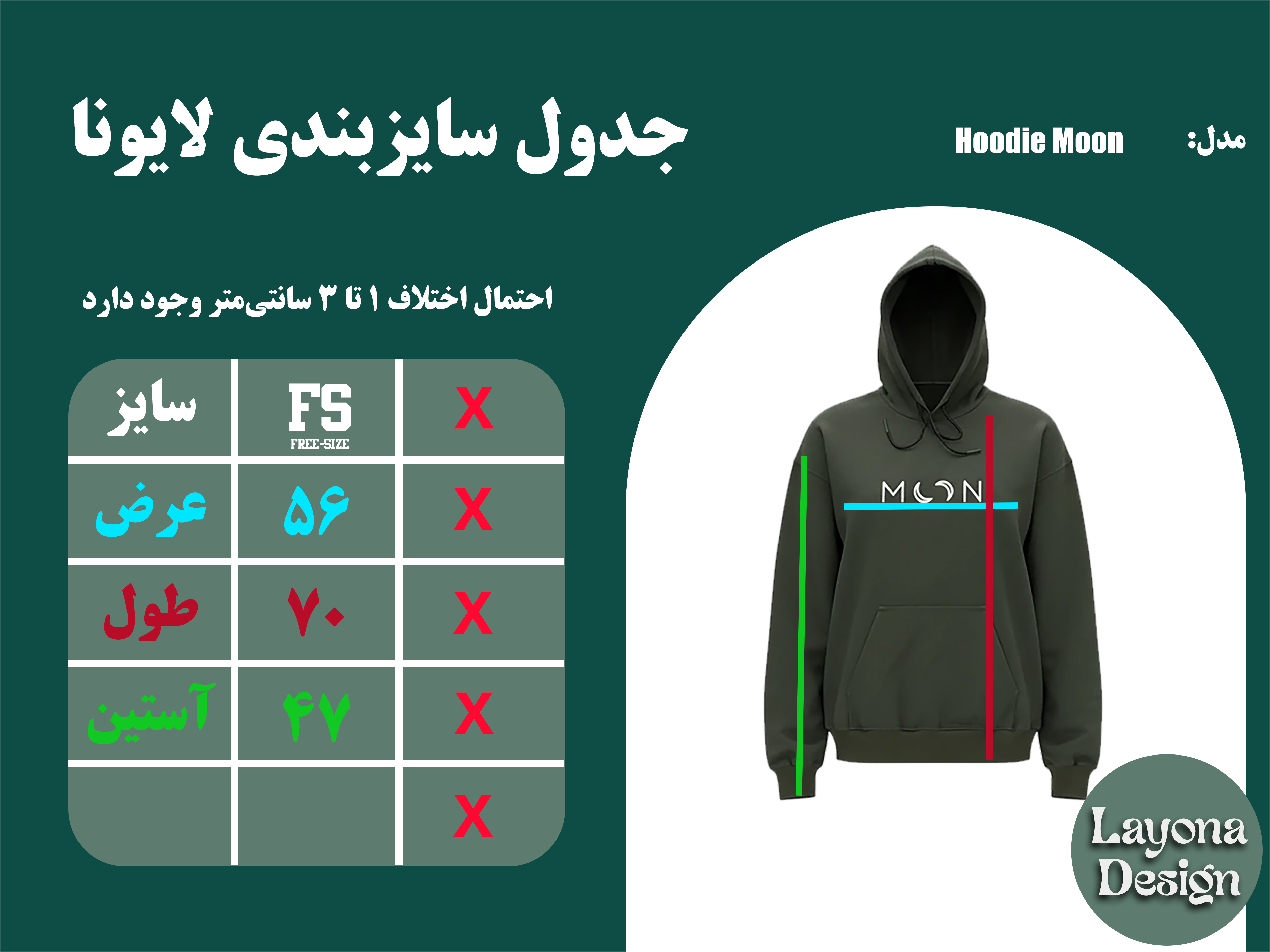 جنس پارچه سهنخ پنبه، این مدل را برای استفاده چهارفصل مناسب کرده و در استفاده روزانه حس راحتی ایجاد میکند. طراحی ساده در کنار گرافیک Moon، بدون شلوغی بصری، هویت مینیمال برند Layona را حفظ کرده است.