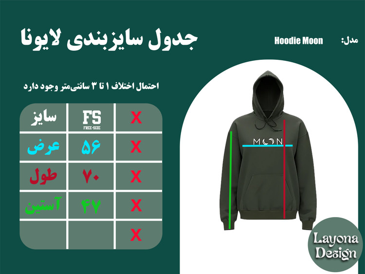 هودی زنانه طرح Moon Layona با طراحی مینیمال و الهامگرفته از فرم ماه، برای استفاده روزمره و استایل کژوال طراحی شده است. این هودی چهار فصل با تمرکز بر راحتی، کیفیت و فرم مناسب، انتخابی کاربردی برای استفاده روزانه محسوب میشود.